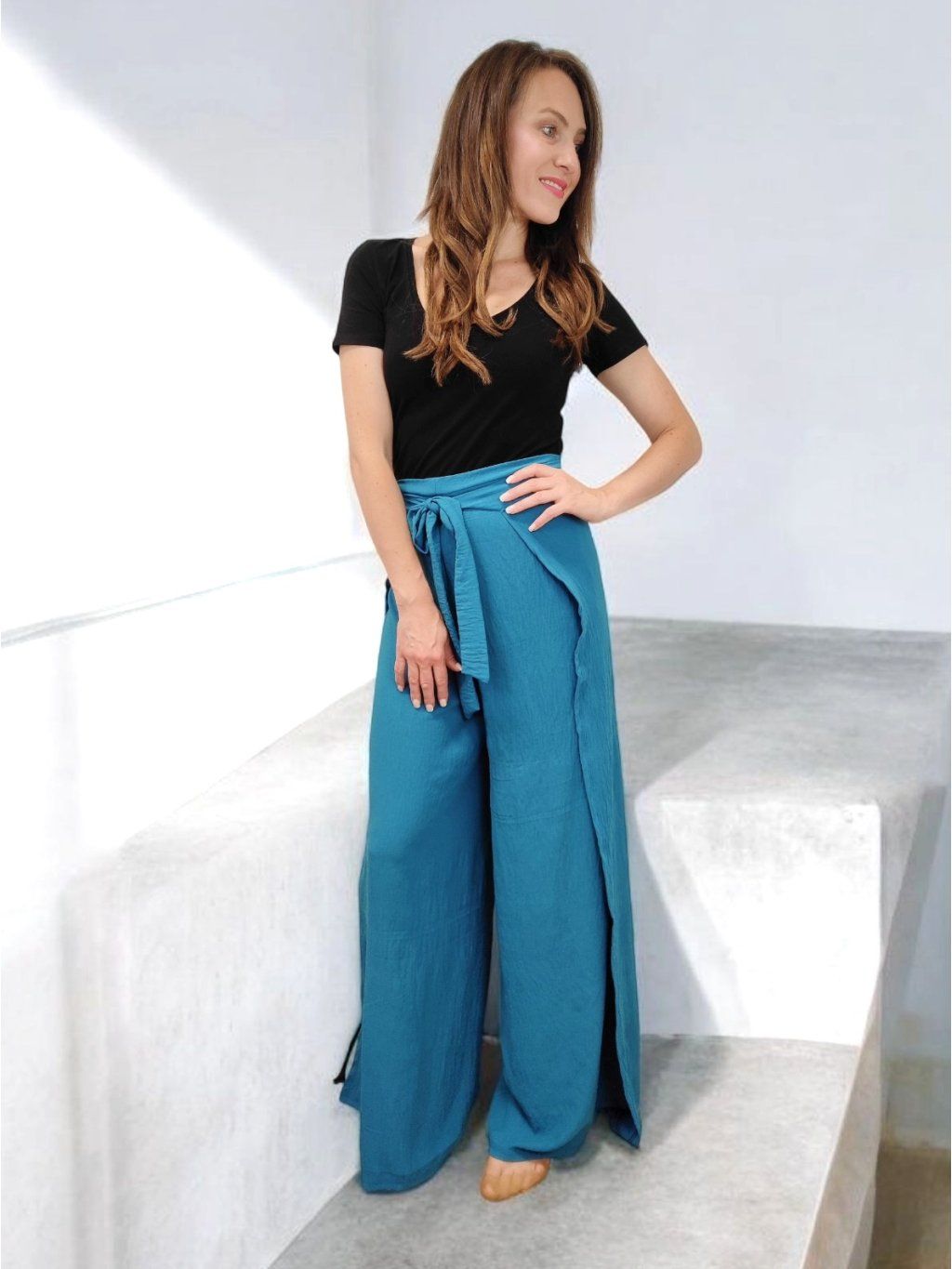 Jak uvázat kalhotovou sukni Wanaki | Česká móda, zavinovací střih, široké kalhoty