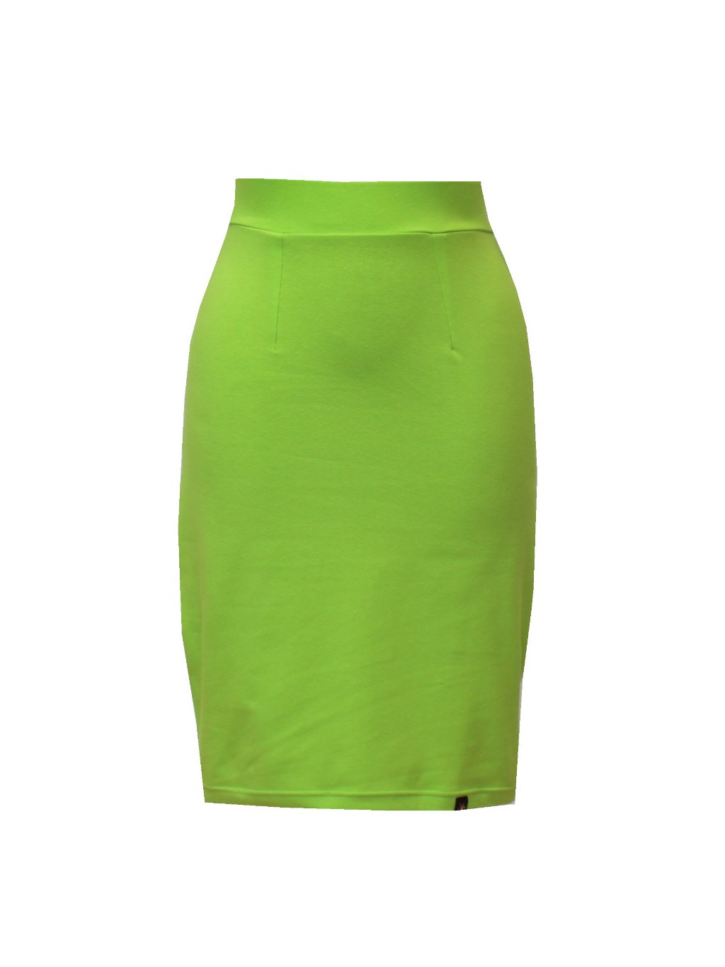 Zelená pouzdrová sukně do pasu má vypasovaný střih.
