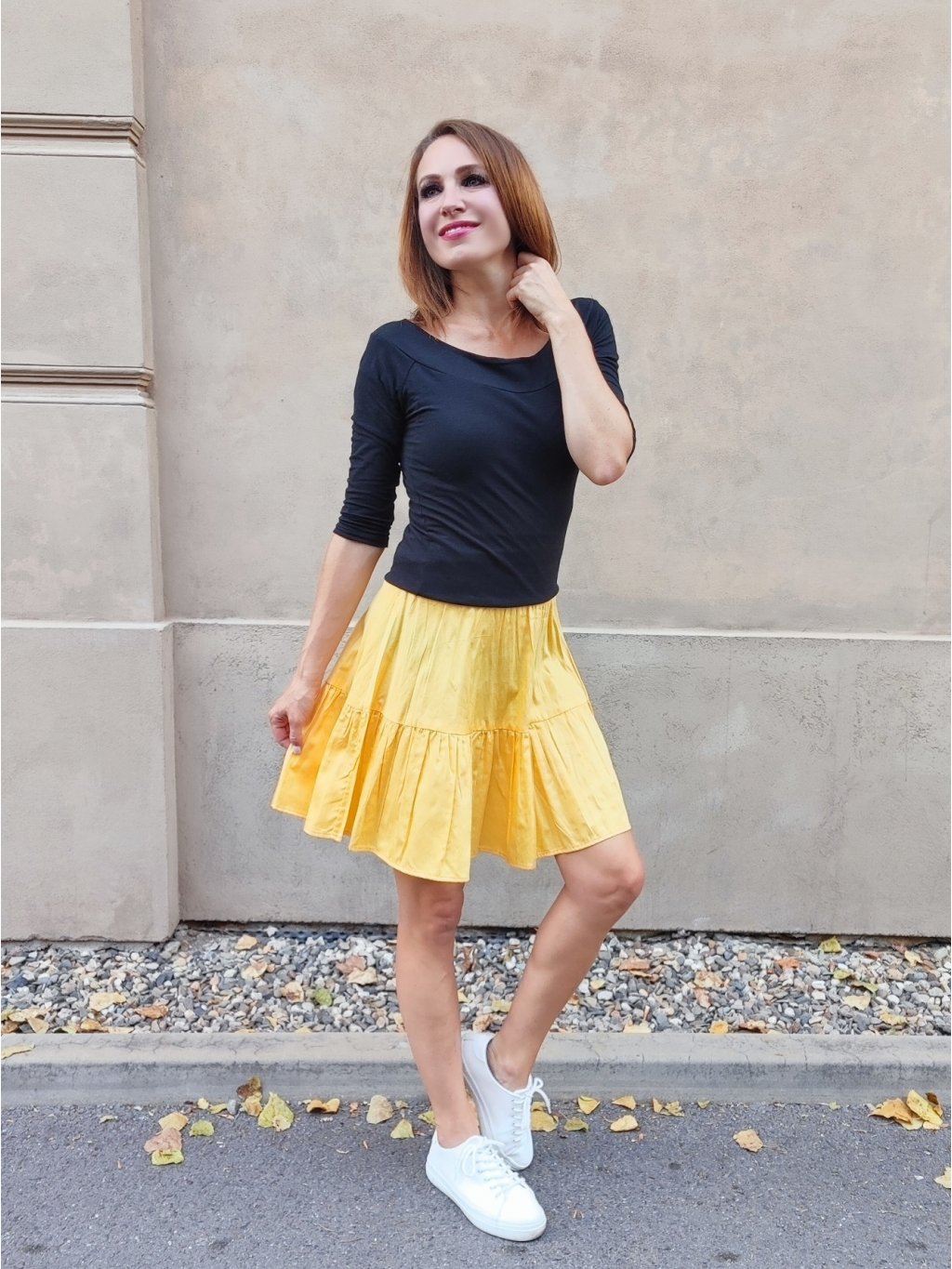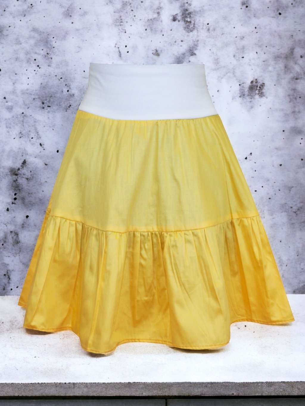 Žlutá volánová sukně z jemného bavlněného plátna české výroby. Skvěle se hodí od jara do podzimu.
